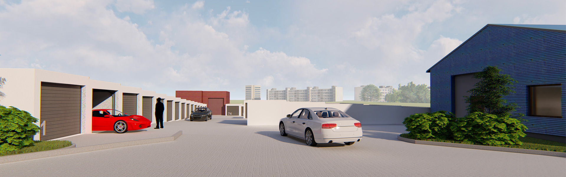 4N Garages and warehouses je z 99% dokončený garážový a skladový komplex o 97 ks garáží (z toho je 6x dvojgaráž (3x bez zahrádky, 3x se zahrádkou na kterou se vstupuje dveřmi v zadní části garáže), 9ks jednogaráží se zahrádkou a 76 ks jedno garáží.